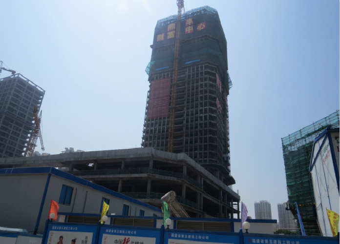 查看詳情 泉州世貿中心,該樓盤高度為208米超高層建筑,采用我公司生產的SC200/200GBG變頻高速施工升降機,速度為0~60m/min,并采用240高標準節以及電纜導軌。